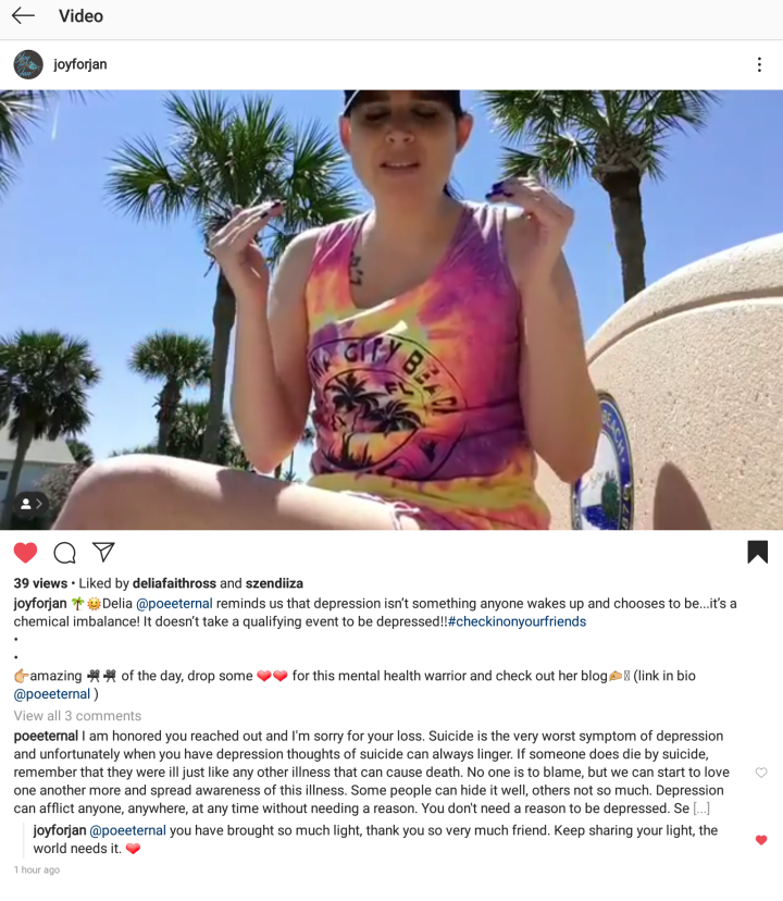Recently I was asked if I would do a short VIDEO on depression awareness and you can watch it on the JoyforJan Instagram direct by the link below:
