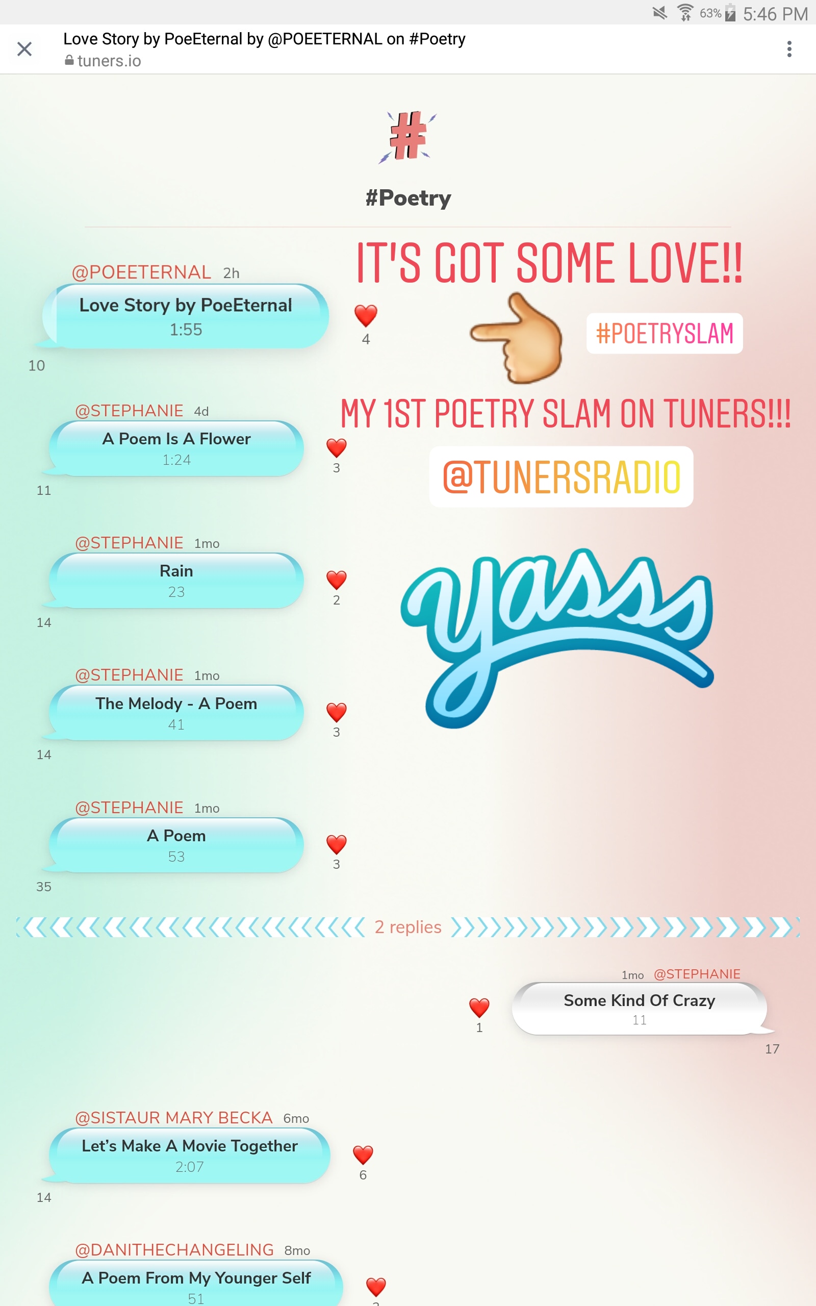 Love Story poetry slam now dropped on Tuners! You can listen free here: https://tuners.io/users/POEETERNAL Click to email a link to a friend (Opens in new window) Email PostLike Loading... Related
