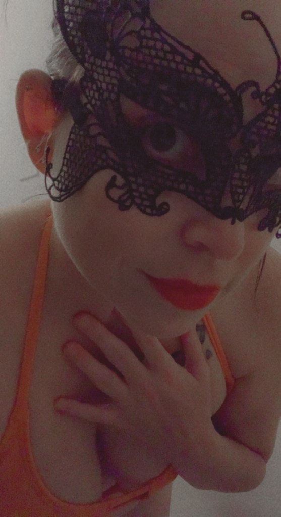 Wearing a mask and lipstick only – full set on my OnlyFans (my shit is softcore but NSFW) ๐ xoxo ๐