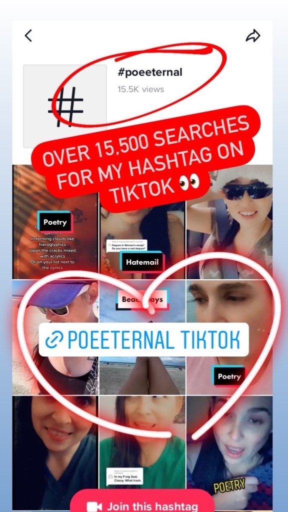 On a positive note, my hashtag has been searched/viewed over 15,500 times on the TikTok (Poe says he’s responsible for a few) 🤓