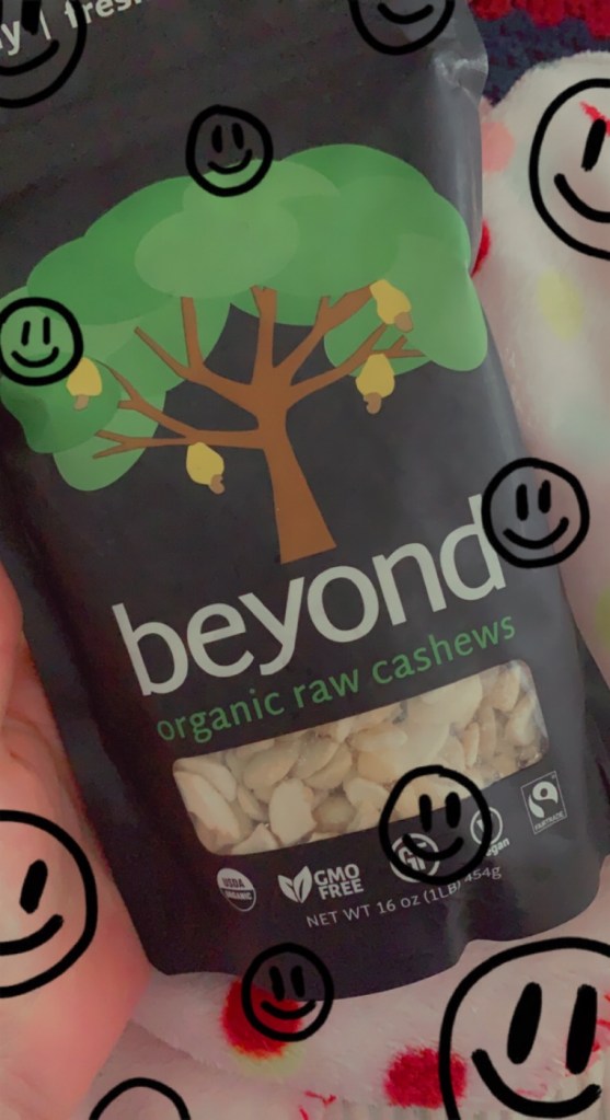 I don’t know why buying nuts has to be so complicated but it’s really hard to find the ones that aren’t roasted or coated in something that isn’t poisonous but I do have a pound of cashews to get me through the month