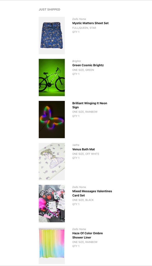 I saw they had the valentine set back up and I was going to go ahead and get another set because it was $.96 and I thought what the fuck I haven’t received my first set but I’ll go ahead and get those and double it since they’re only $.96 and I’ll be damned if those bitches weren’t already sold out…