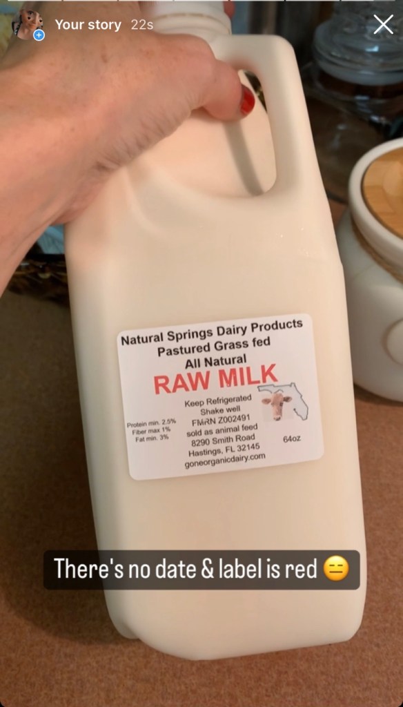 I do recommend that big bag of great value dry powdered milk for eight dollars and never ever ever fucking raw milk without a goddamn date on it that’s labeled animal feed and why are they selling it to humans you fucking assholes