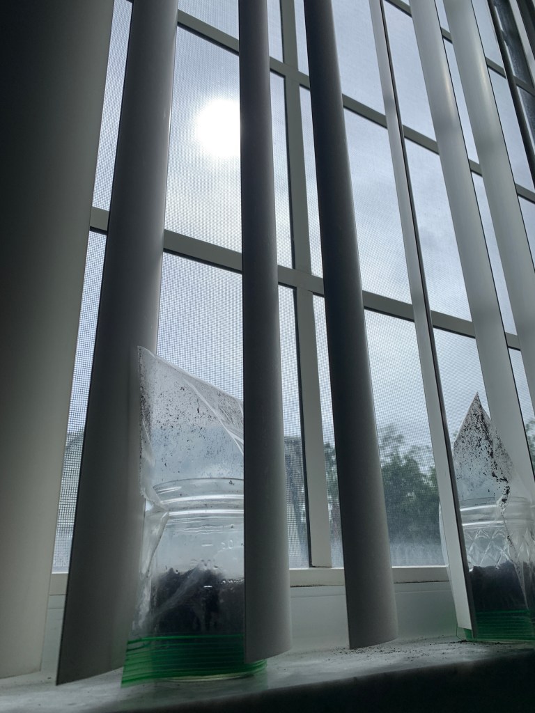 I haven’t cleaned my windows yet I’m sorry. And now there’s dirt on the windowsill. It started raining gently so I popped open the window and said “wake up” and gave it some of my spring water. I see a tiny piece of green.