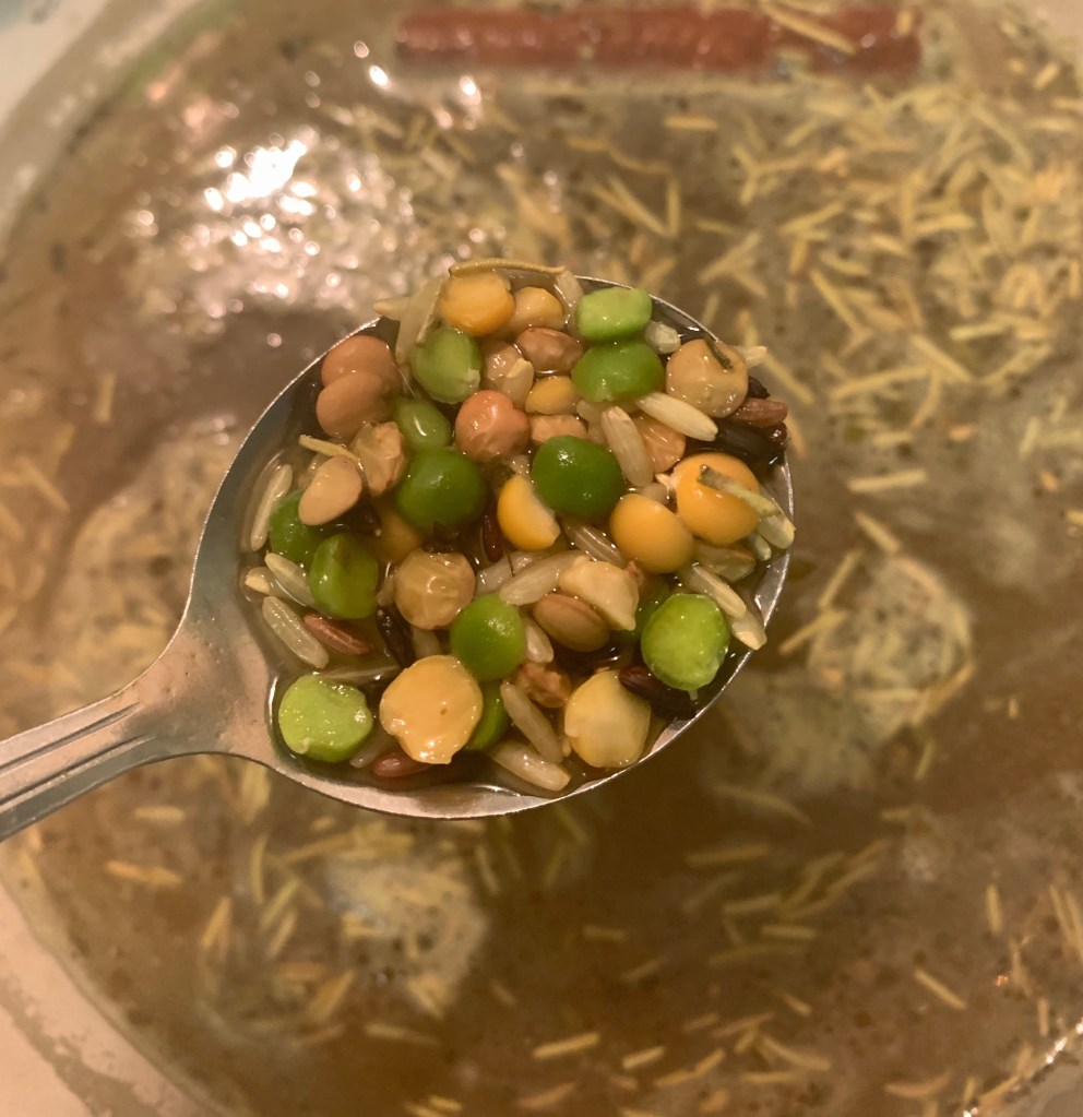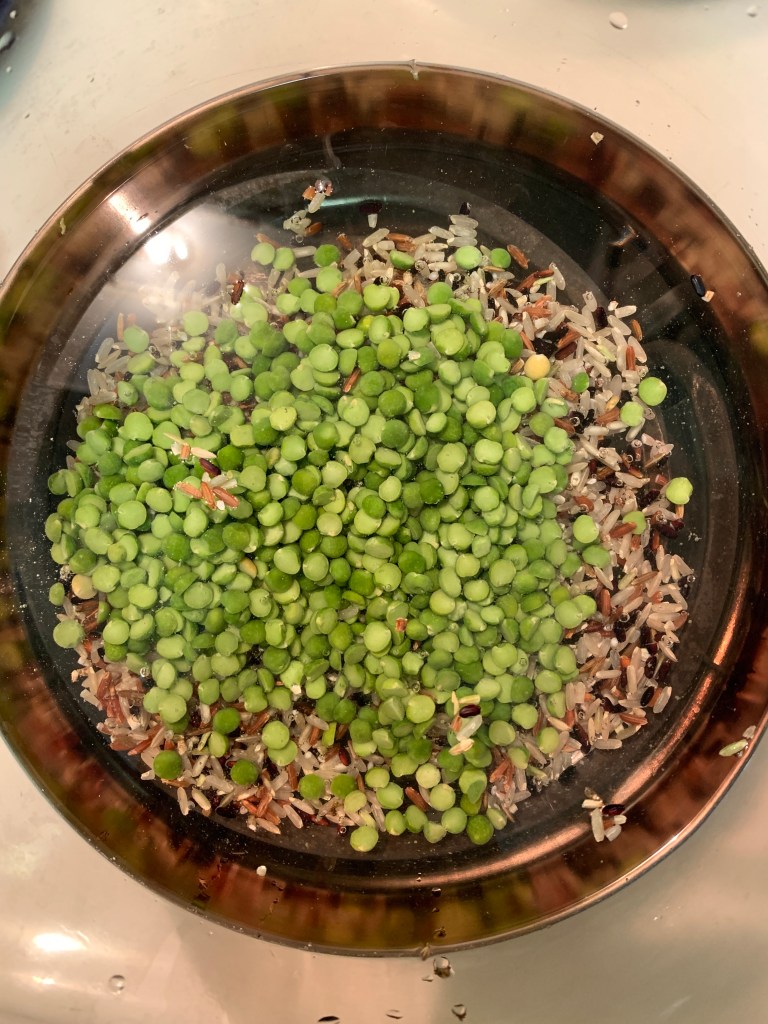 Filled it with lots of wild rice (red, purple, black, brown, white) and green split peas