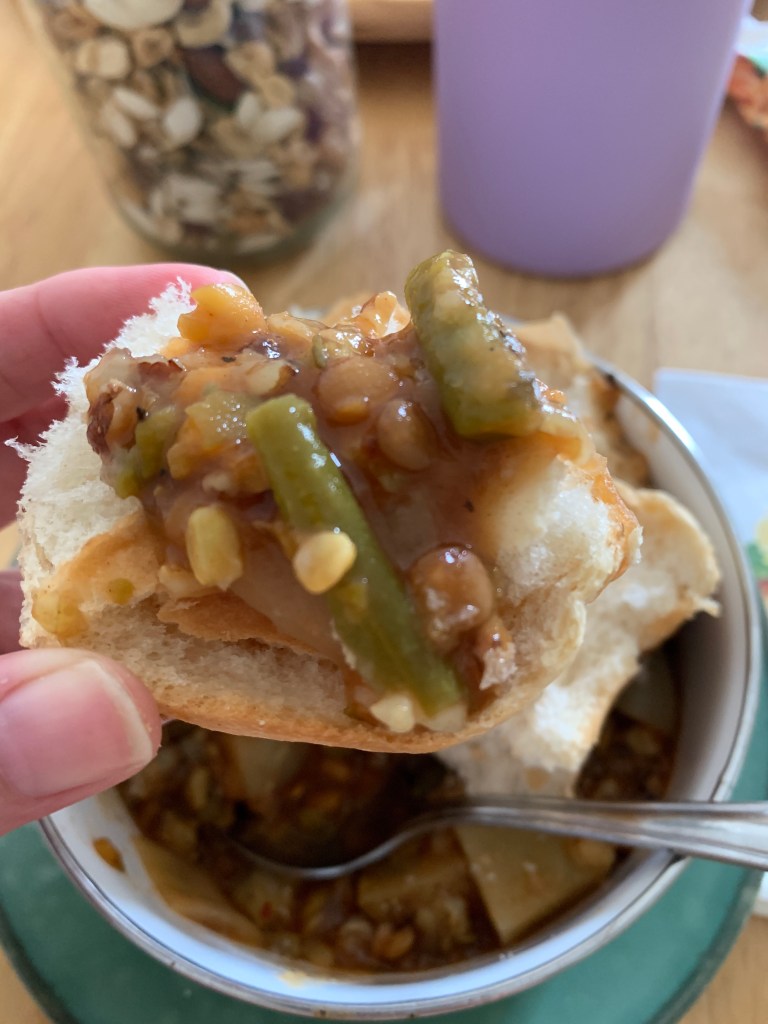 The soup turned out amazing, I also added green bean and a small tin of tomato sauce for color, and will be keeping the tin to sprout some new seeds.