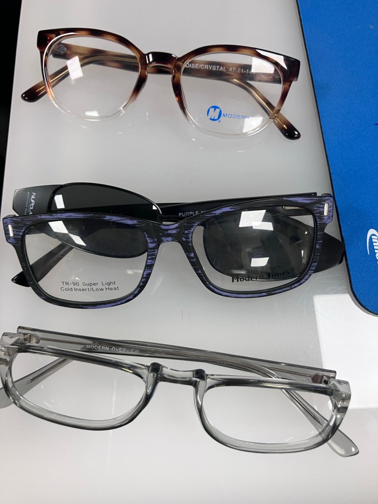 I do like the 3 new frames incoming tho (the clear will be my readers, the purple/black the tint, and the cute feminine pair on top is for my dailyware